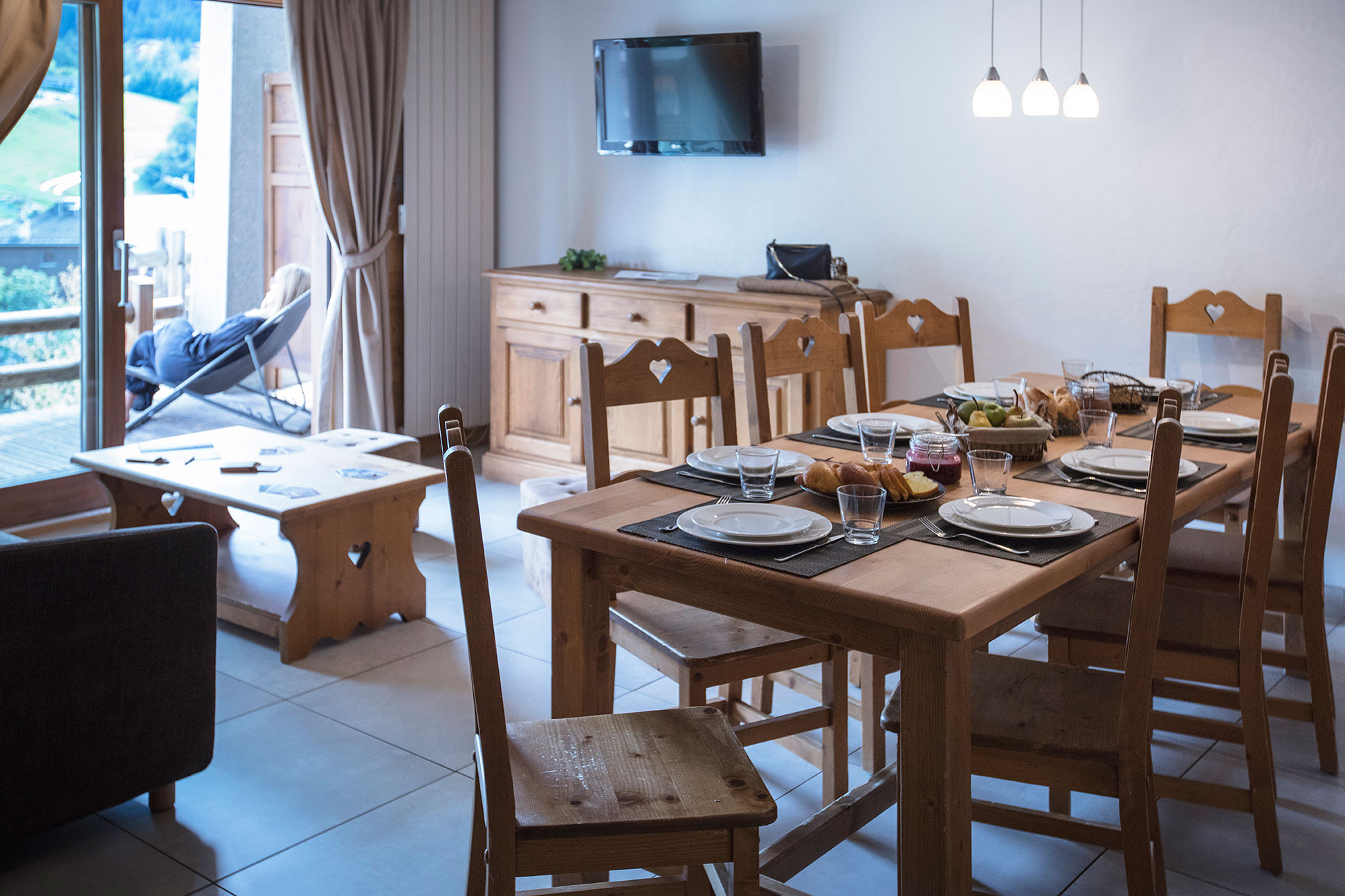 - A balcony. The apartments are located on the upper floors and all have a beautiful view overlooking the Aravis and the village.