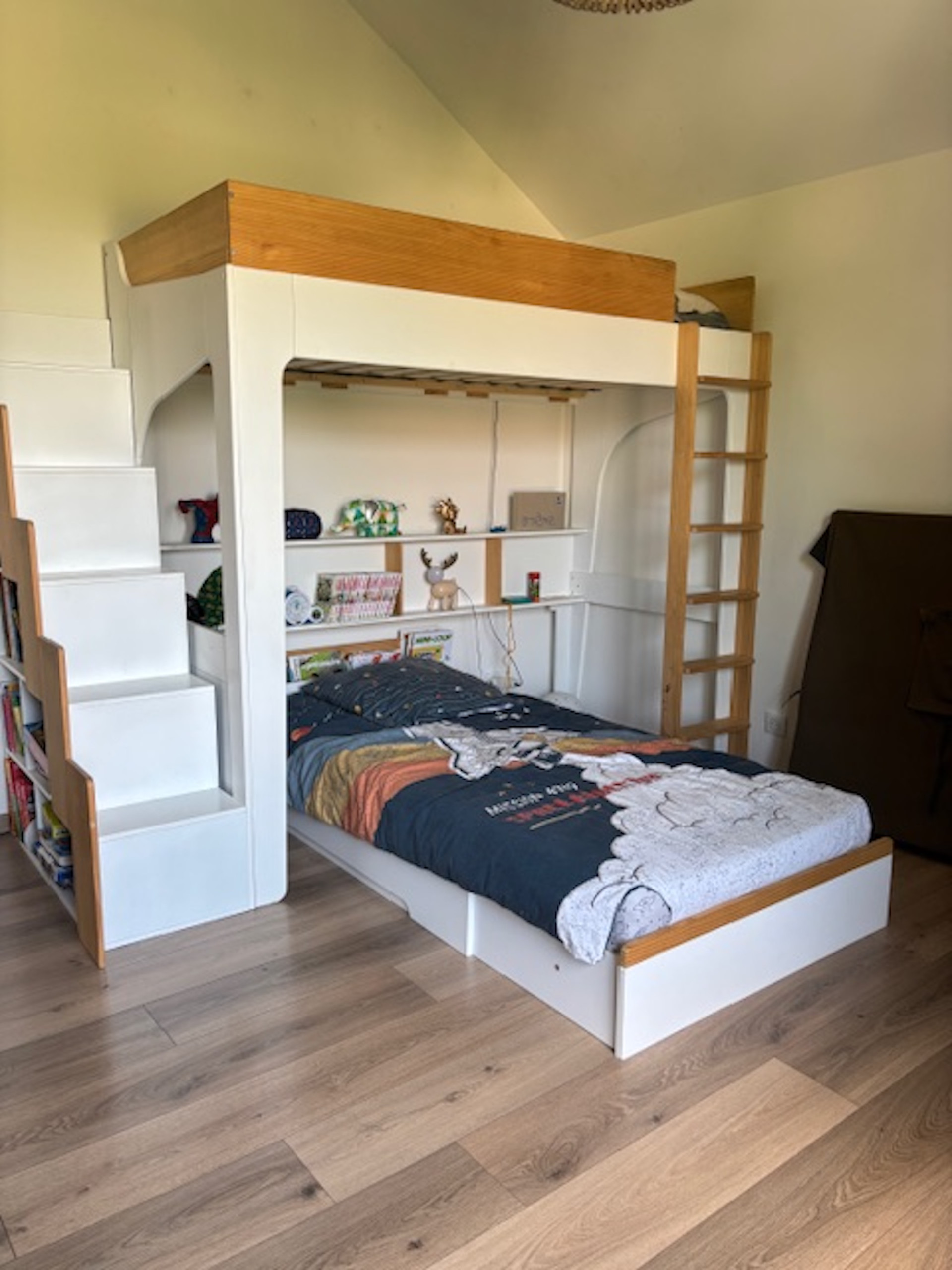 - 1 chambre avec lit simple mezzanine 90x190cm+ 1 lit simple + rangements
