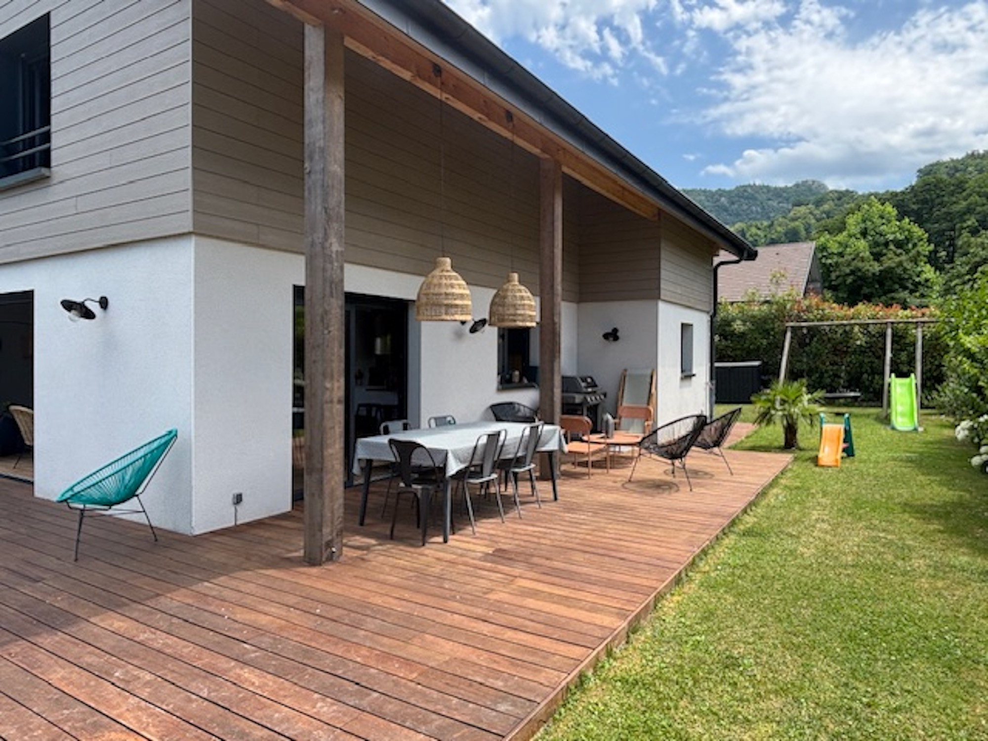 Décoration soignée pour cette somptueuse villa récente de 165M2, idéalement placée dans un cadre calme et champêtre à deux pas de la piste cyclable et du lac . Vous profiterez du vaste terrain entièrement clos et arboré de 580M2 et de sa terrasse bois de 60m2 .