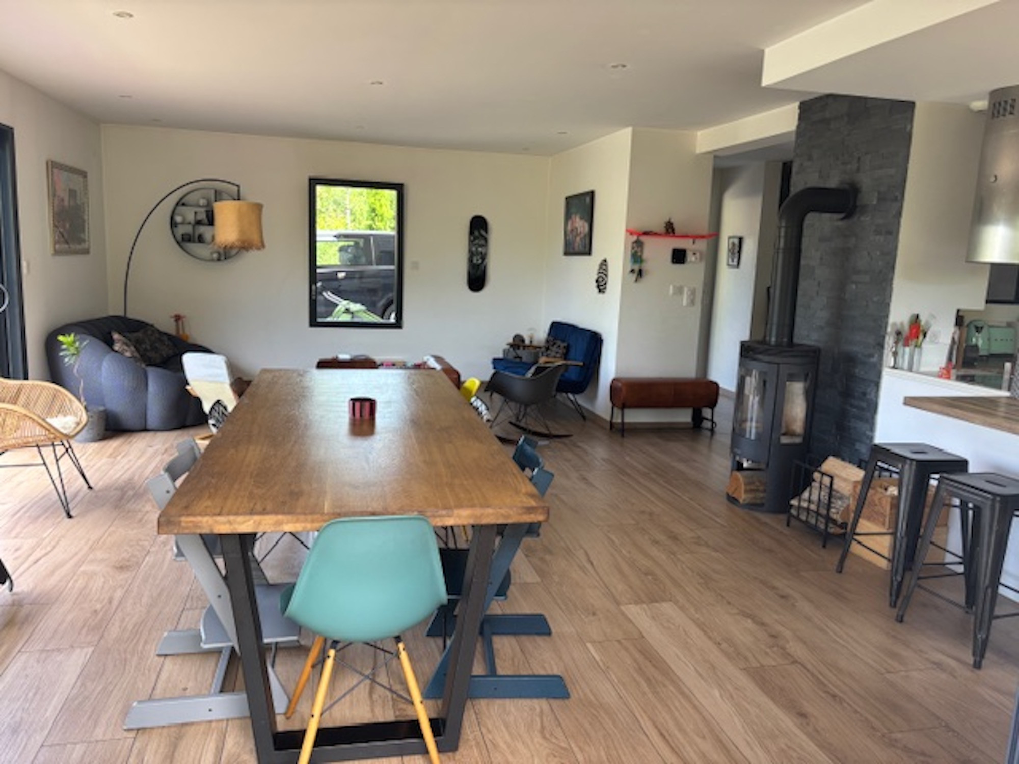 - Vaste pièce de vie baignée de lumière avec accès sur la terrasse et le jardin , salon avec cheminée, salle à manger et cuisine entièrement équipée (Cafetière Grain, bouilloire, lave-vaisselle, plaque indiction, micro-ondes, four, réfrigérateur, vaisselles /couverts, ustensiles de cuisine