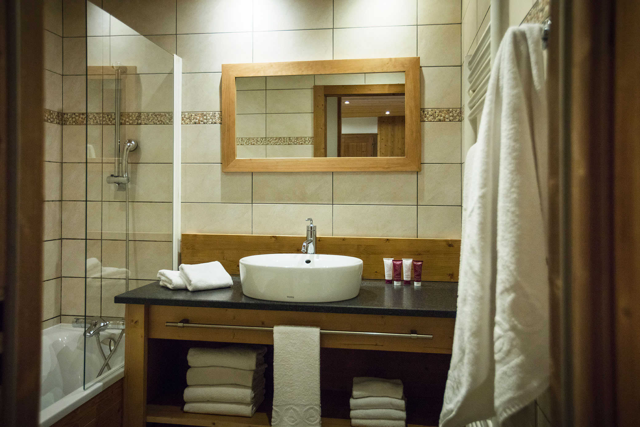 - Une Salle de bain équipée d’une baignoire, d’un radiateur sèche serviettes